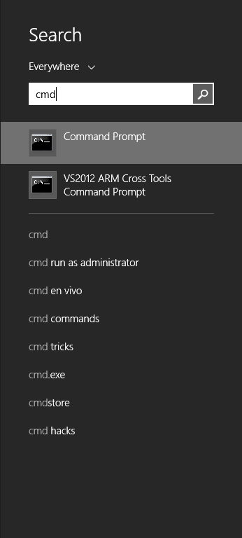Đa phần, ở hệ điều hành Windows bạn muốn khởi động cmd, bạn chỉ việc nhấn phím hình logo Windows (Ở giữa 2 phím Ctrl và Alt đối với máy bàn, với laptop FN và Alt) gõ vào ô tìm kiếm (Search hoặc Run) "cmd".