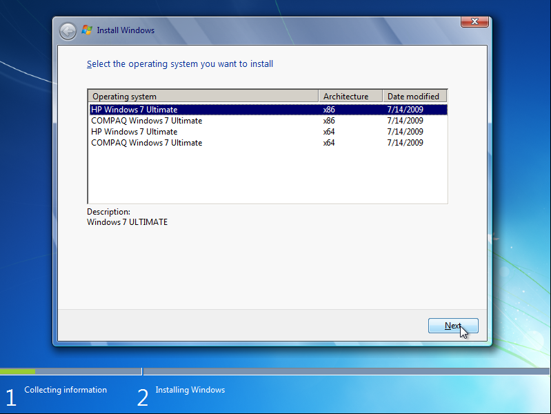 bản phù hợp và click Next. Ngược lại