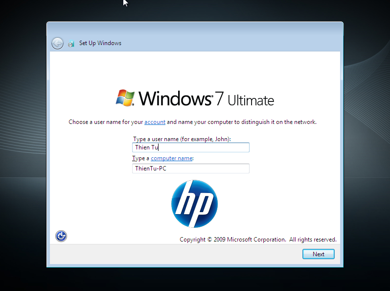 hệ điều hành được cài đặt, hệ thống sẽ yêu cầu nhập tên người dùng vào ô Type a user name và ô Type a computer name sẽ tự động được