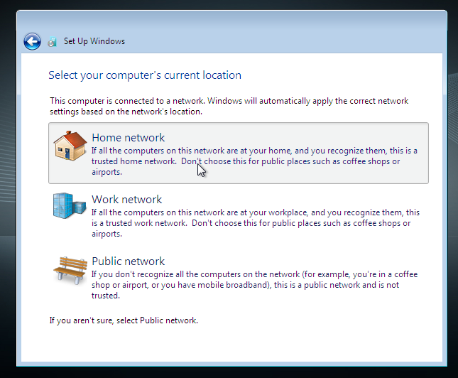 này, hệ điều hành yêu cầu bạn thiết lập cấu hình mạng (nếu như bạn có kết nối
