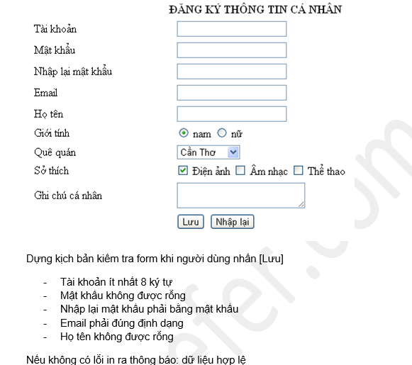 Ở phần 1, mình đã thiết kế xong giao diện form nói trên, và phần này mình sẽ dựng kịch bản bằng javascript theo yêu cầu nói trên.